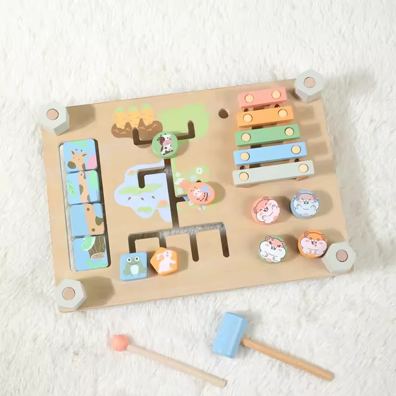 Wooden Toys for Babies Busy Board Game Double-sided Montessori Learning Toys Kindergarten Toy Educational Activities